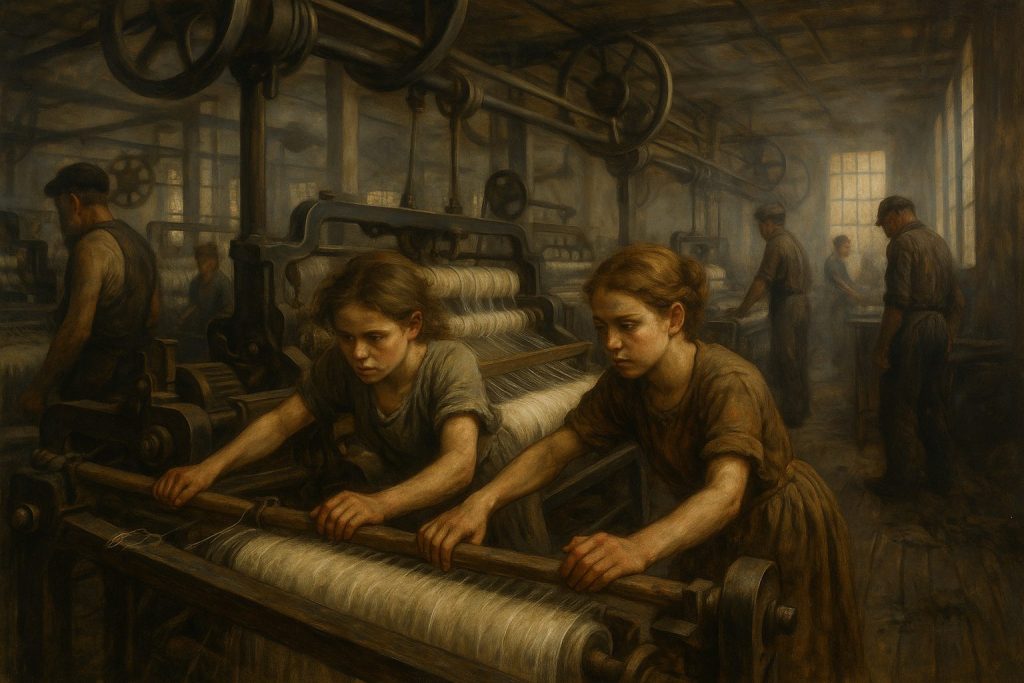No voy a explicar ahora la Revolución Industrial porque a todos nos suena. Empezó en Inglaterra, gracias sobre todo a la combo perfecta entre carbón y máquina de vapor. Las ciudades se llenaron de fábricas y los campesinos migraron a la ciudad a la espera de una vida mejor. Pobres… no sabían la que le esperaba… Jornadas interminables de hasta 16 horas en fábricas ruidosas realizando trabajos repetitivos para ganar una miseria. Ciudades atestadas y sucias, llenas de ratas y humo. Capataces impasibles que exprimían cada gota de sudor de los proletarios… Niños de 7 años hilando algodón y limpiando las máquinas.