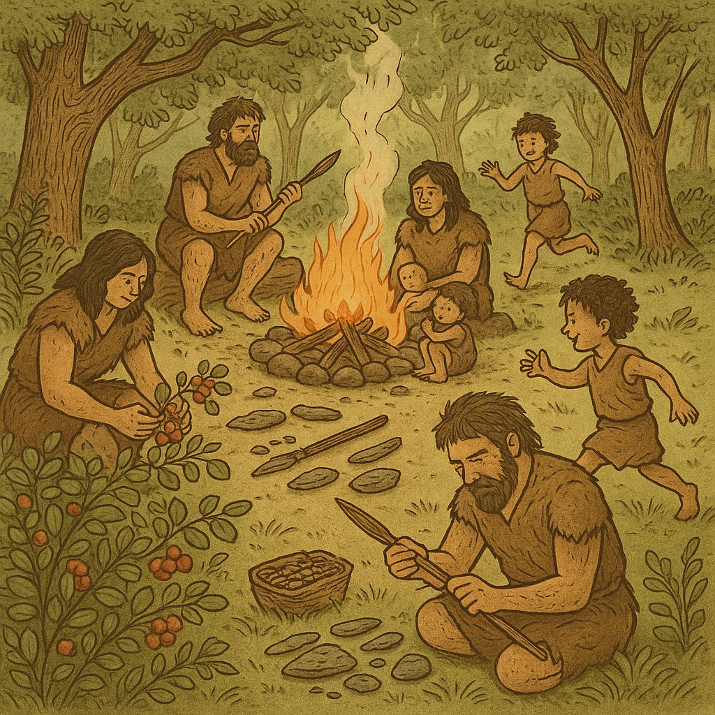 Lo primero que debemos entender para captar la tesis de este capítulo, es que los cazadores recolectores llevaban viviendo la misma vida durante cientos de miles de años. Hubo cambios, por supuesto: el manejo del fuego, el desarrollo del lenguaje abstracto, la fabricación de herramientas sencillas, el arte rupestre… Pero en lo fundamental vivieron igual generación tras generación, tras generación. ¿Menudo aburrimiento, no?