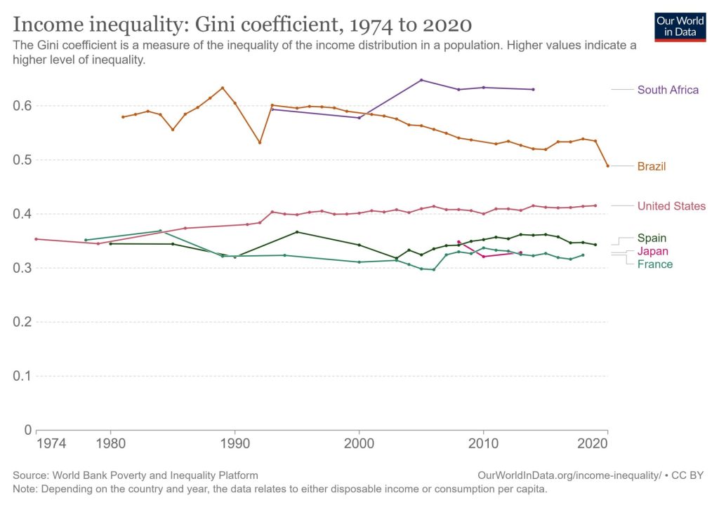 Evolución del índice Gini de desigualdad desde los años setenta