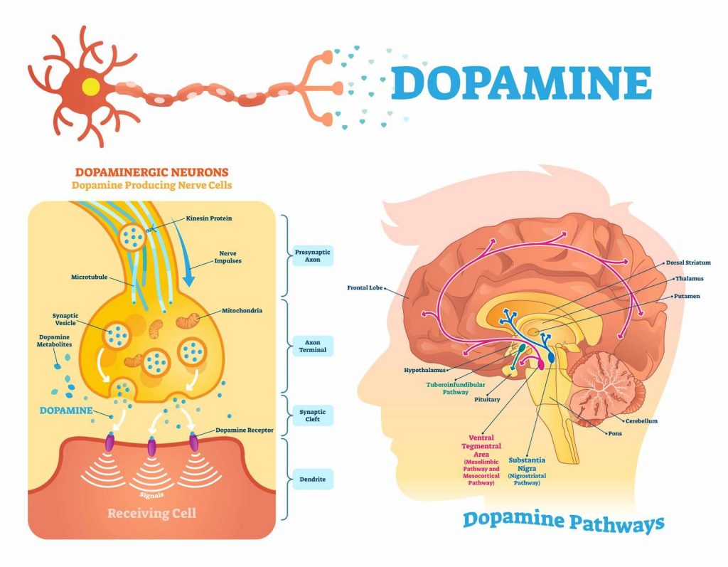 Aquí volvemos a la dopamina. La dopamina es un neurotransmisor, una molécula que segregan algunas neuronas en el cerebro que cumple muchas funciones, pero a nosotros nos interesan dos: la motivación y la recompensa. De alguna manera que desconocemos, la segregación de dopamina nos produce placer y eso fija un recuerdo: “chocolate rico”. Al día siguiente, mientras trabajamos, pensamos en la chocolatina que vamos a comer al llegar a casa. En ese momento también se segrega dopamina, anticipamos el placer, nos movemos para ir a casa cuanto antes.