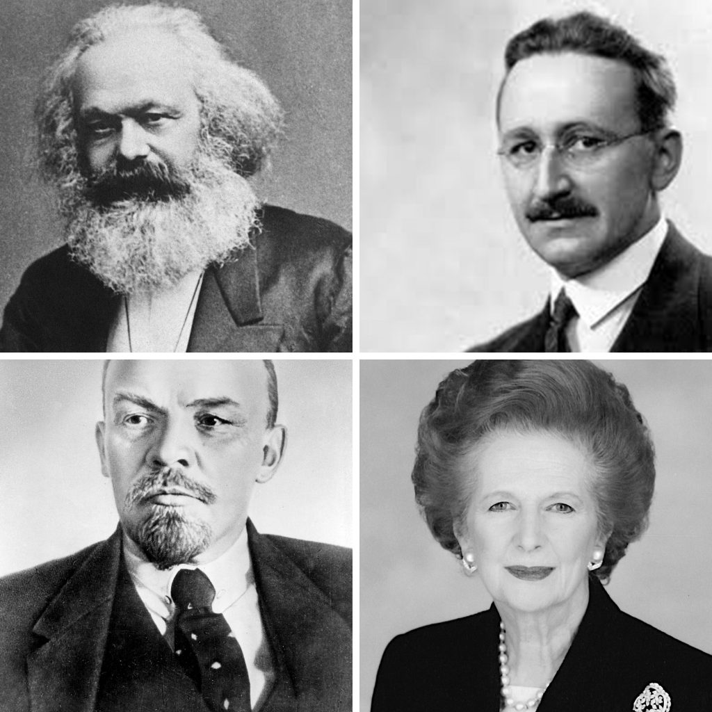 Los rebeldes e inconformistas son quienes intentan ampliar o mover la ventana. Unos pocos se convertirán en líderes de opinión, influencers o como los quieras llamar; son los que crean la nueva realidad. Los líderes son personas con las que podemos identificarnos pero que a la vez tienen “ese algo” que les hace parecer más competentes, más seguros, más sabios, más valientes, más poderosos. Algunos de ellos son hombres de acción, otros usan las plumas para influir en los que toman las decisiones. Karl Marx escribió El Capital y Lenin intentó hacer realidad sus ideas. Hayek escribió Camino de servidumbre y Margaret Thatcher se inspiró en su obra y buscó reducir la intervención del Estado en la economía del Reino Unido.